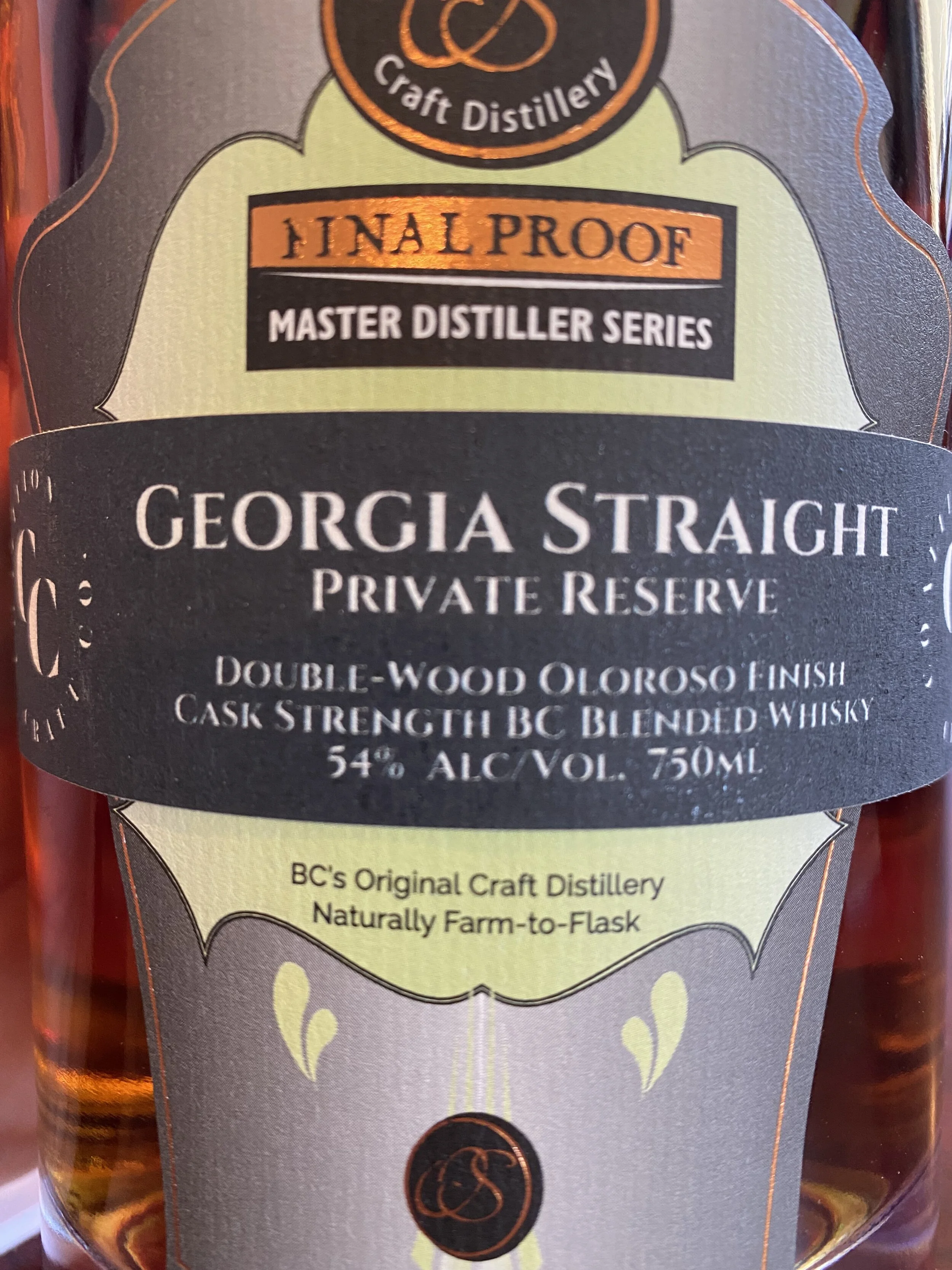 I can't lie but I am tickled pink with the way that the Okanagan Spirits Georgia Straight came out. It is my personal blend, a classic Canadian whisky finished in oloroso barrels and bottled at cask strength. Green spice notes on the nose hide the sneaky dried fruit and pop of cacao, butterscotch and rye spice.